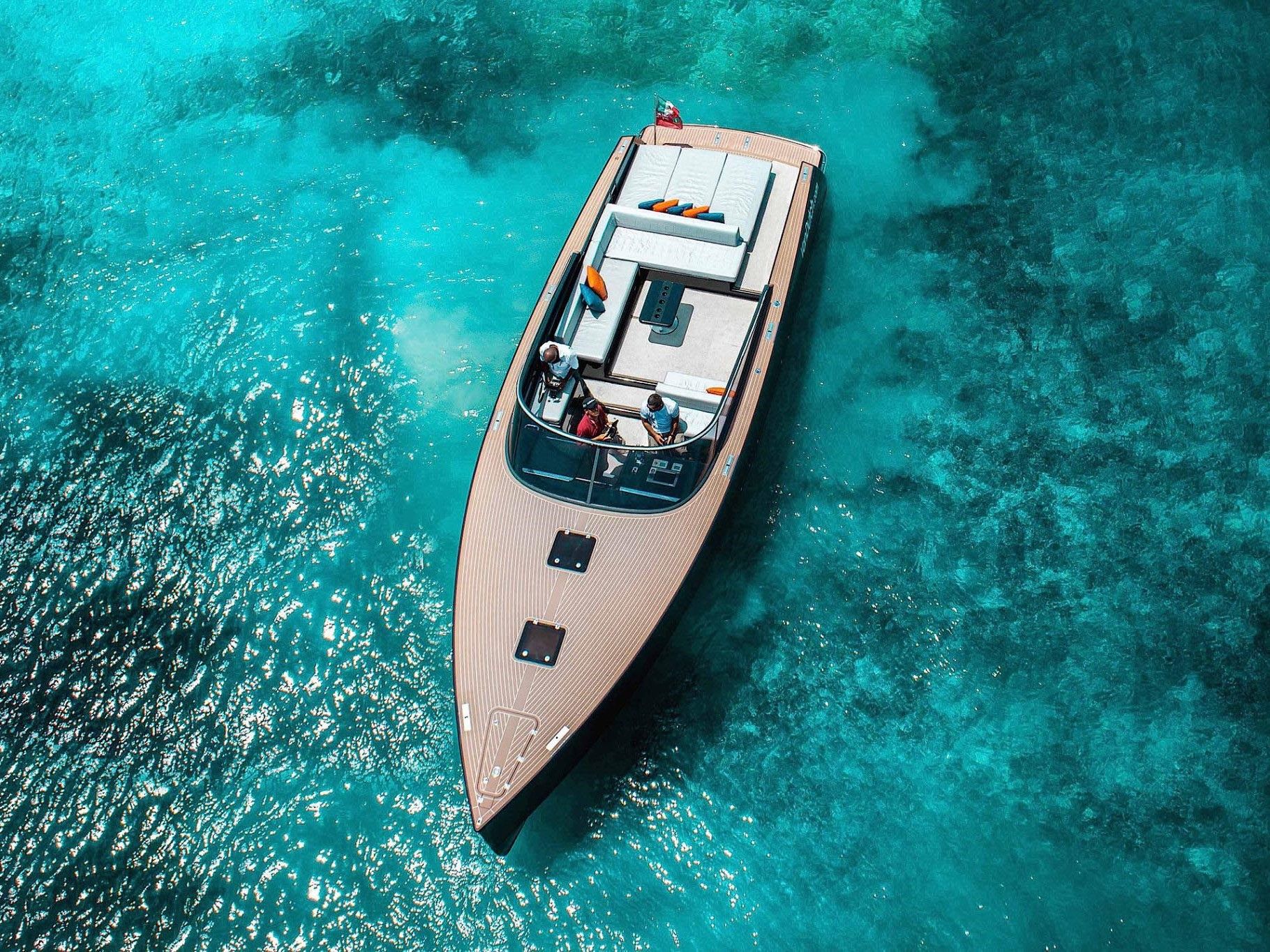 Les lignes épurées ont été soigneusement dessinées par un expert mondialement reconnu pour offrir à la dizaine de passagers un espace de vie confortable avec de nombreuses assises et bains de soleil tout en optimisant les performances de navigation. Avec une vitesse de pointe qui peut atteindre les 36 nœuds (70km/h), le VanDutch reste un bateau particulièrement puissant et maniable, notamment grâce aux propulseurs avant et arrière inclus tous les modèles de la gamme VanDutch. Côté consommation de carburant, le VanDutch reste très raisonnable grâce à ces lignes aérodynamiques et un poids total plutôt léger pour un bateau de cette gamme.